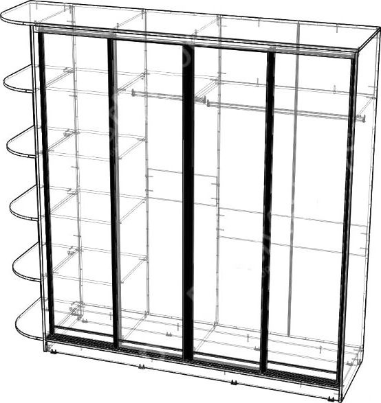 Особая отличительная черта шкафа купе, это дверь, которая представляет собой подвижную панель. Дверь может быть одинарной, двойной и прикрывать как весь шкаф, так и перемещается между секциями превращая его то в книжный шкаф, то в плательный. И именно дверь является самым декоративной и стильной деталью.