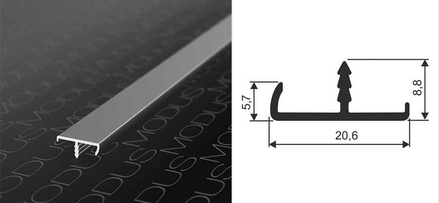 Серия T - Врезные алюминиевые профили Т-образной формы используются для декоративного оформления кромки мебельных фасадов. Основная роль декоративно-защитный кант. Наиболее часто врезной профиль монтируют на мебель, изготовленную из ЛДСП, пластика или панелей с акриловым покрытием.
